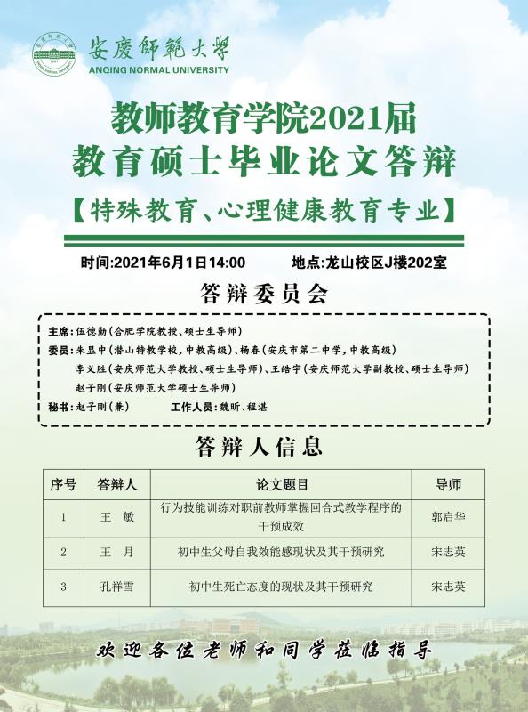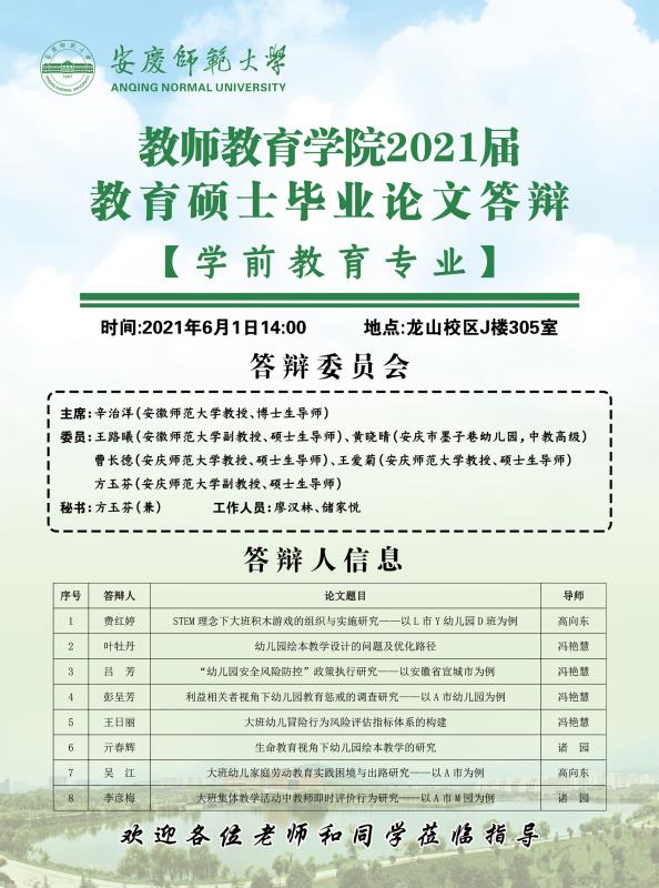 太阳成集团122ccvip2021届教育硕士毕业论文答辩