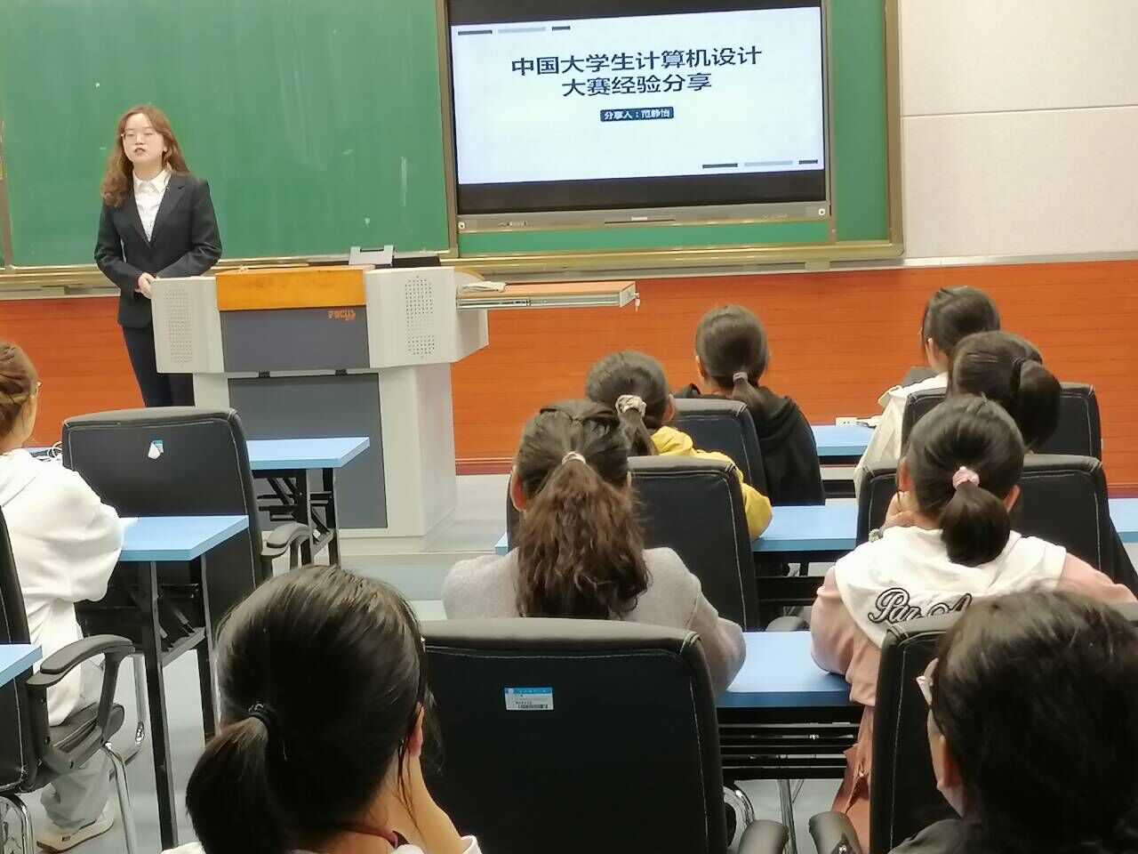 随后,2019级范静怡同学详细分享了她在中国老员工计算机设计大赛和安徽省高等公司师范生教学技能竞赛选拔赛上的参赛经验和学习经历,2019级齐铭、许程娟两位同学也就一年来的在校学习、生活等方面的要点进行了分享,回答了2020级新生关注的热点问题。