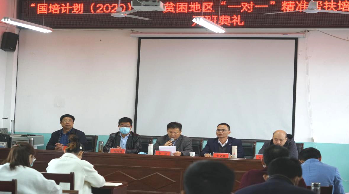 为了全面落实教育部、财政部“国培计划”总体要求和2020年新部署新要求,太阳成集团122ccvip于2020年10月 31日上午8点, 分别在阜阳颖东区冉庙中心公司和临泉庙岔中心公司举行了“国培计划(2020)”——贫困地区“一对一”精准帮扶项目的开班典礼。此次开班典礼由查怀志、夏小庆主持,项目首席专家、教师教育公司党委书记曹长德教授、党委副书记许世平、项目负责人李义胜教授参加了典礼。