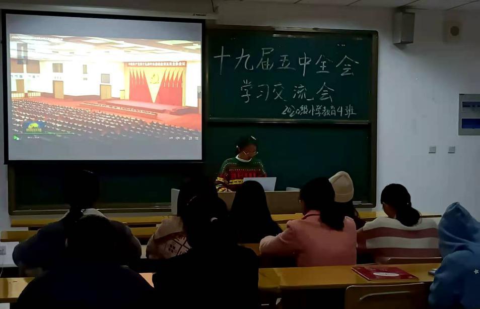 学习党的十九届五中全会精神,公司特展开以报告宣讲、主题征文及书法美术作品展示为载体的特色活动,各班级团支部通过组织观看相关视频向青年老员工传达会议精神,开展主题宣讲会并进行学习分享交流,其中2019级小学教育专业3班的刘会宁同学在学习分享中提出为全面建设社会主义现代化国家,我们这一代青年所要做的,是学习好自己的专业知识,为中国特色社会主义的航船继续乘风破浪积蓄力量。