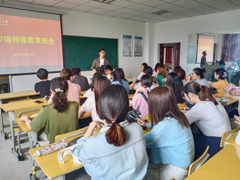 5月14日上午,2017级特殊教育专业在J409举行离校主题班会。会议邀请了公司党委副书记许世平、特殊教育教研室主任郭启华、教研室刘文雅、刘琼瑞等老师参加。班会由辅导员潘日余主持。