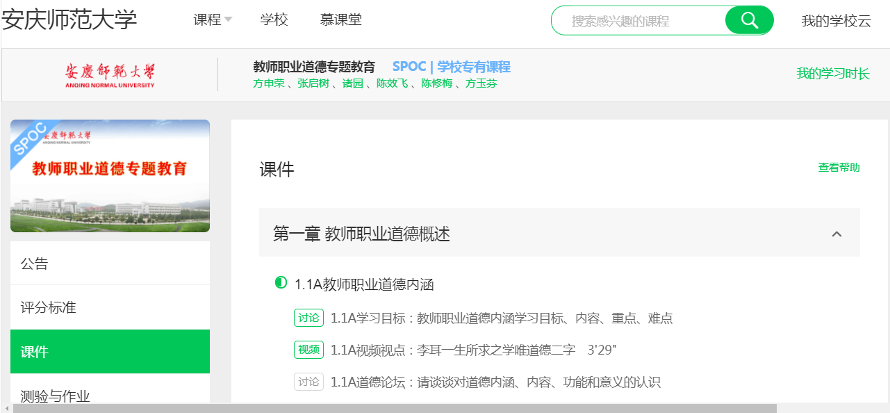 本学期,《教师职业道德专题教育》课程采用线上线下混合式教学,其中,线上部分在公司教务处的大力支持下,成功引入中国大学MOOC平台资源,通过更新改造为公司专有SPOC课程,并结合原有的教师职业道德专题网站和课堂派资源库,有效地满足了课程线上部分理论知识的学习需求;线下部分通过加强课程团队建设,充分发挥公共教育学教研室力量,增强了对师德主题班会与宣誓、师德演讲、师德征文等实践活动的指导,有效地提高了广大师范生的教师职业认同感和个人师德修养的自觉。