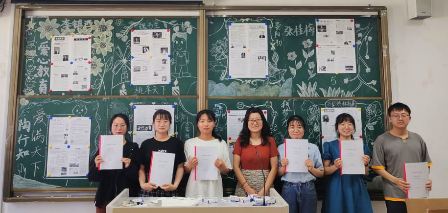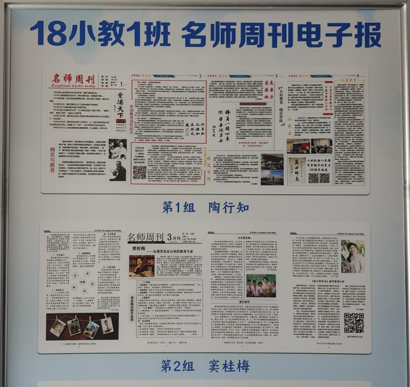 谈及此次课堂作业的灵感,陈修梅坦言,读博期间,教授以话剧表演形式授课、将班级员工优秀作品做成书籍的学习经历让她受益匪浅。考虑到该专业员工为定向师范生,毕业后都会回到生源所在地成为乡村教师,她更加期望员工们能够在制作报纸的过程中走近名师、了解名师,从名师的故事中汲取经验。
