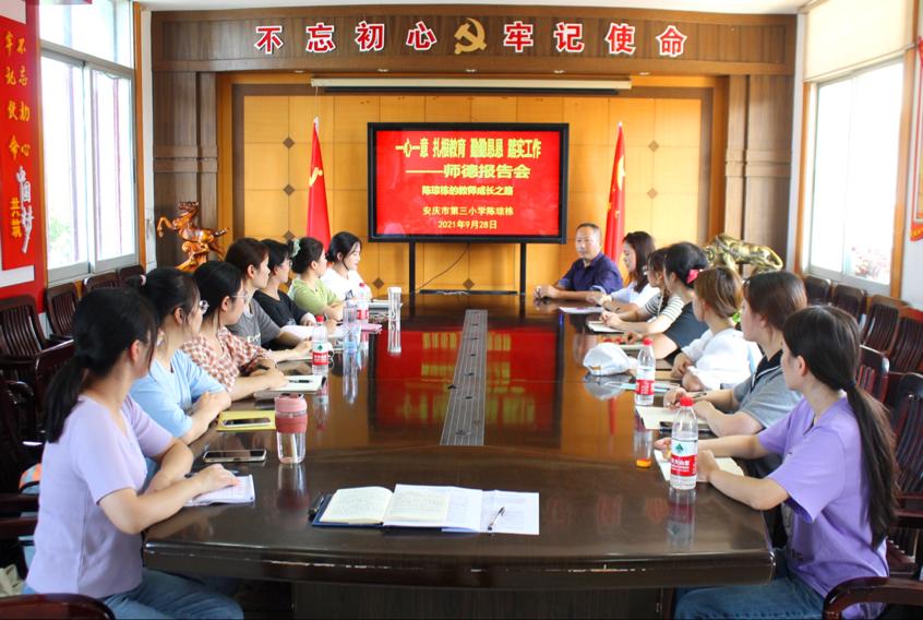 石化三小副董事长陈琼栋首先对员工们的到来表示欢迎。接着,他以“一心一意,扎根教育,勤勤恳恳,踏实工作”为主题作了师德专题报告。他结合丰富的教育案例,生动而深刻地阐释了《中小学教师职业道德规范》的内容和意义,并以自己32年的教书育人经历为线索,通过丰富的案例、珍贵的照片、与员工相处的动人故事,以及当年援疆经历,分享了自己教书育人的工作经验和思考,诠释了教师工作的重要使命与非凡意义,展现了自己对员工和教育的热爱。