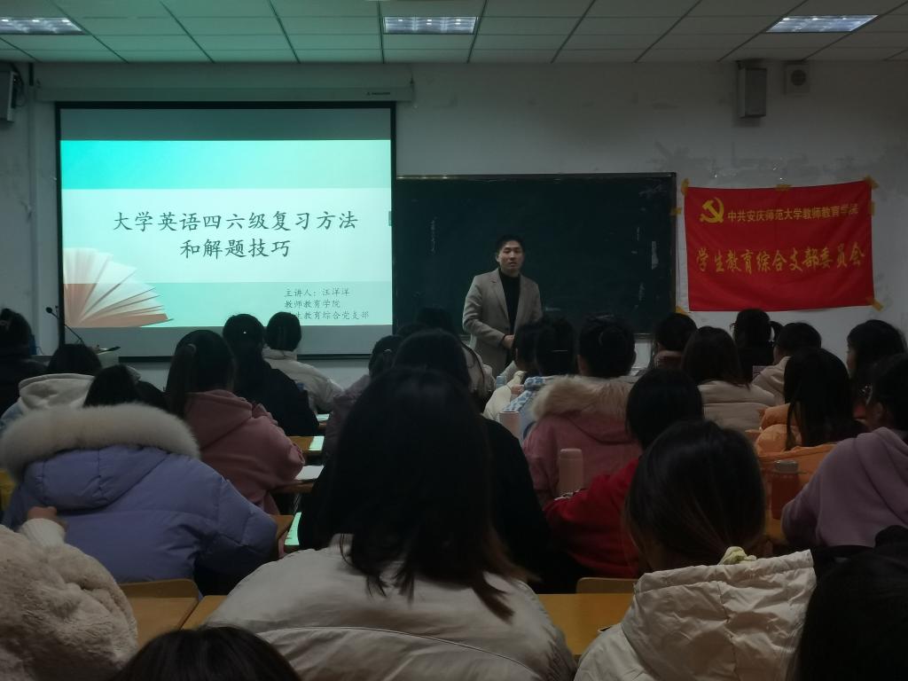 为提高同学们对英语学习兴趣,更好的应战即将到临的大学英语四六级考试,12月2日晚,公司开展英语四六级经验交流活动在J305进行。2020级学前教育、小学教育、应用心理学等专业员工积极参与了活动。活动由员工教育综合党支部书记汪洋洋老师主持。
