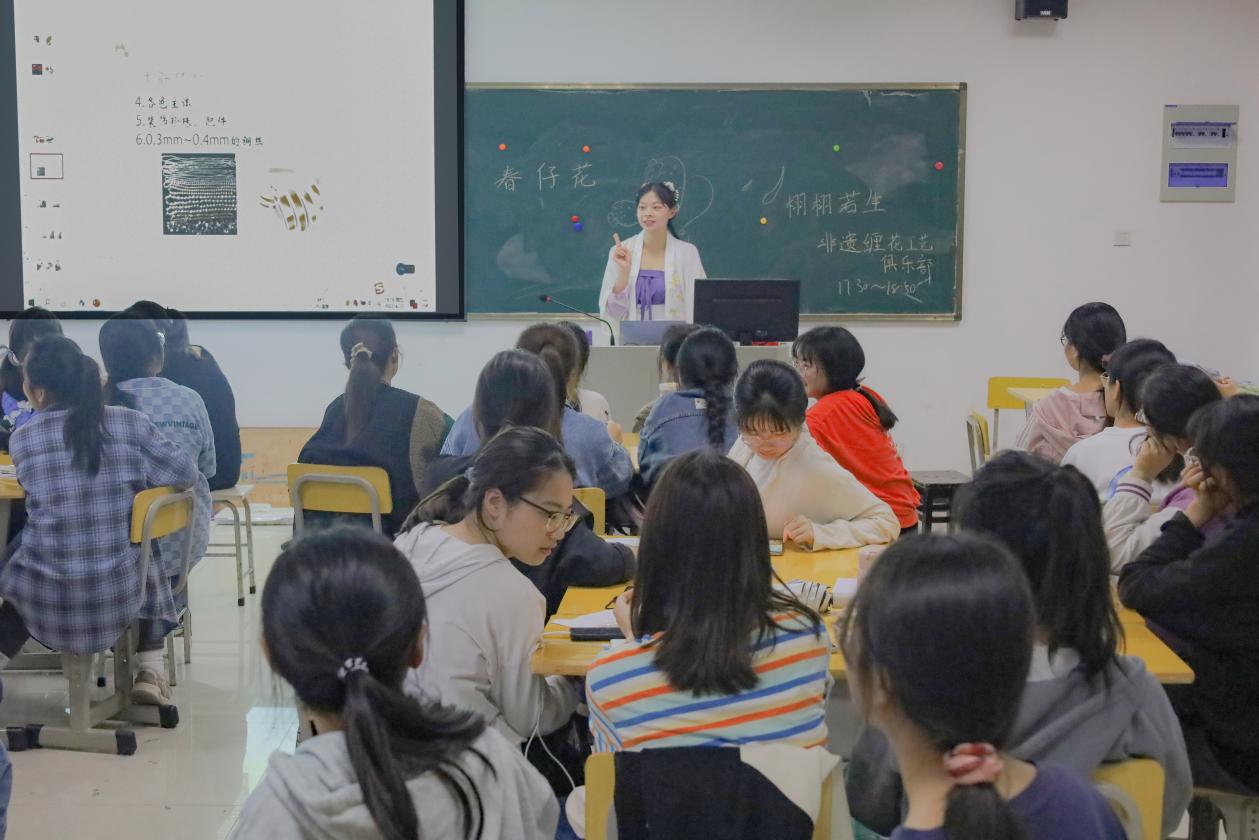 为传承非物质文化遗产,丰富公司同学们的校园文化生活,充分发挥员工活动组织在文化育人、组织育人中的作用。4月22日,公司“栩栩若生”非遗缠花工艺俱乐部于J604正式开班, 40多名俱乐部成员参与课程,由20级学前三班郭玉洁主讲。