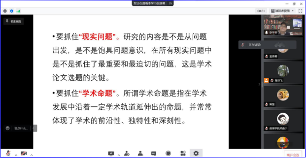 在谈到论文选题时,李博士指出选题要抓住“现实问题” 和“学术命题”,发现好的研究问题,并树立问题意识,在理论观点的争议中寻找问题,从阅读与交流中发现问题,从公司或学科发展中确定问题。在学术写作部分,李学书博士从期刊对学术论文的基本要求出发,对选题、文献收集、文献综述写作、学术论文的规范与风格等部分进行了深入阐释。最后,李学书博士结合自身的审稿经验对期刊发表进行了指导,包括选择有冲击力的论文题目、选择合适的期刊、把握恰当时机与编辑语言沟通和心灵对话,并希望青年员工以“非躺平”的方式走出科研“内卷” 重围,脚踏实地走科研之路。