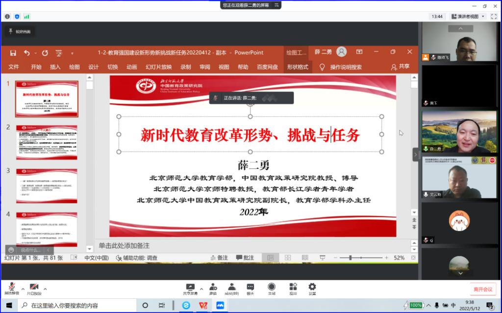 薛教授从教育政策与教育规律的本质内涵、中国教育改革和发展的经验研判、扎根中国大地办教育的内外挑战和高质量教育体系建设等四方面进行深入阐述。