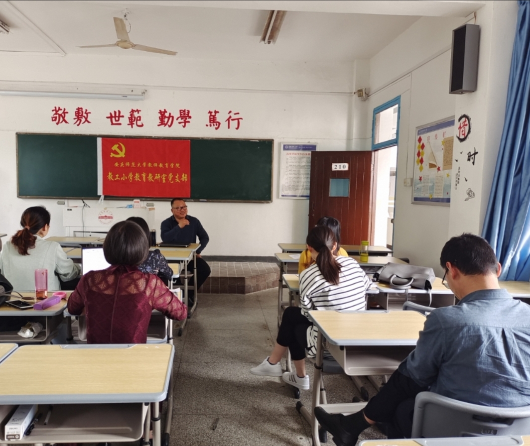 为深入学习党的十九届六中全会精神,5月18日下午,执行经理吴云助在菱湖校区教学楼210教室为教工小学教育教研室党支部上了一次主题党课。本次党课由支部书记诸园主持,支部全体党员教师参加学习。