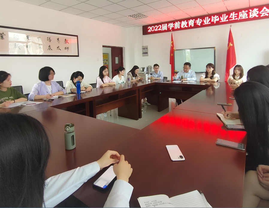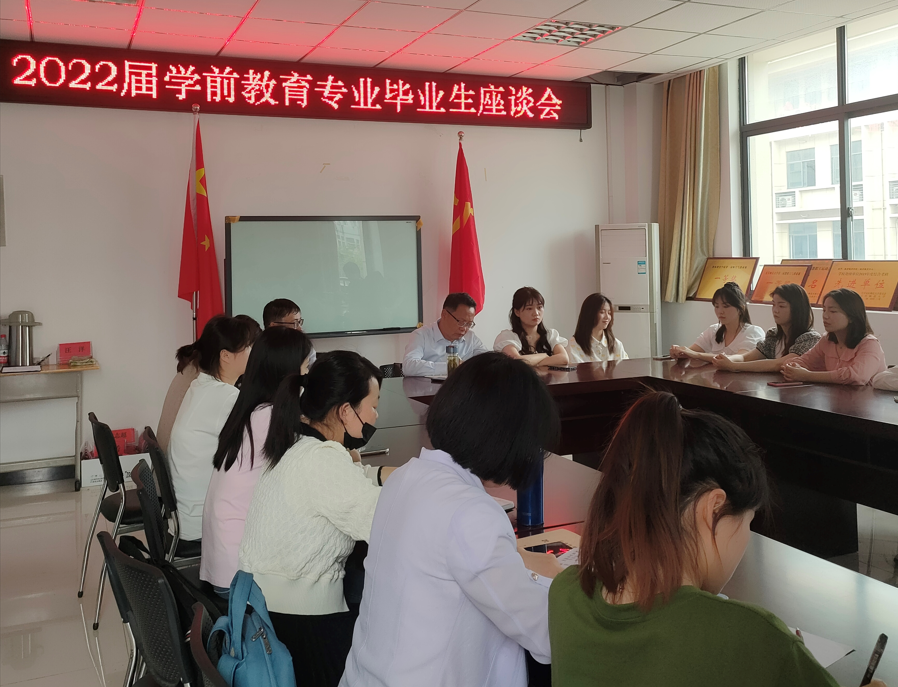 春风十里尽芳菲,砥砺奋发再前行。5月18日上午,公司在J202会议室召开学前教育专业毕业生座谈会。公司党委副书记许世平,学前教育教研室主任高向东、教学秘书刘雪梅、学前教育专业教师王颖莉、唐道琴、张亭亭等人出席,学前教育专业毕业生代表参加座谈会。