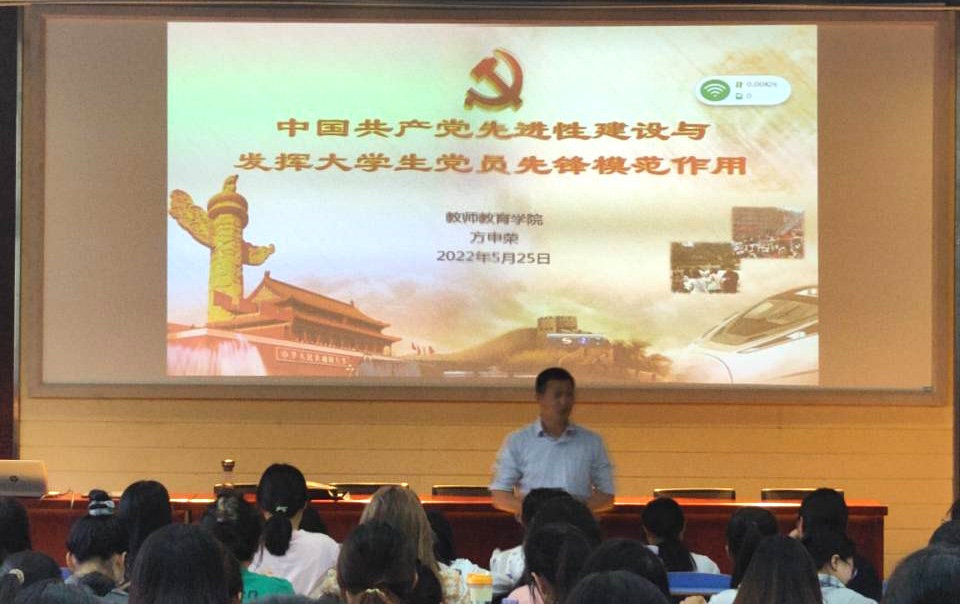 课上,方申荣从中国共产党的先进性和党员的先进性、党的先进性建设的途径和机制、老员工党员要充分发挥先锋模范作用三个方面详细讲解入党积极分子应如何提高思想政治修养,充分发挥模范作用。他表示,加强新时代党的建设需要坚持党的全面领导,全面从严治党,以加强党的长期执政能力建设、先进性和纯洁性建设为主线,以党的政治建设为统领,以坚定理想信念为根基,以调动全党积极性、主动性,创造性为着力点,把党建设成为始终走在时代前列、人民衷心拥护,勇于自我革命,经得起各种风浪考验、朝气蓬勃的马克思主义执政党。他指出,共产党员的先进性是为共产党这一先进政党所要求的一种重要特征,是共产党员不同于普通群众并对普通群众发挥模范带动作用的一种基本的特性和特质。他强调,入党积极分子要加强党性修养和党性锻炼,模范践行社会主义核心价值观,做共产主义远大理想和中国特色社会主义共同理想的坚定信仰者和忠实执行者。