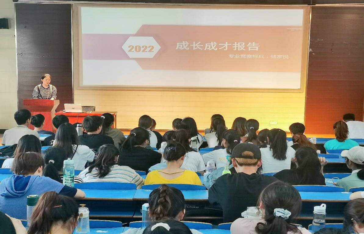 专业竞赛标兵储家悦、钱晓慧、黄小恬结合自己多次参加各类竞赛的经历,与同学们重点分享了自己对师范生技能大赛的参赛心得,从课件制作、汉字板书、教学设计、即席讲演、模拟上课(说课)鼓励学弟学妹们遇到困难应不改坚持本色,努力寻找解决办法并不断向未来进击,脚踏实地,做好当下事。