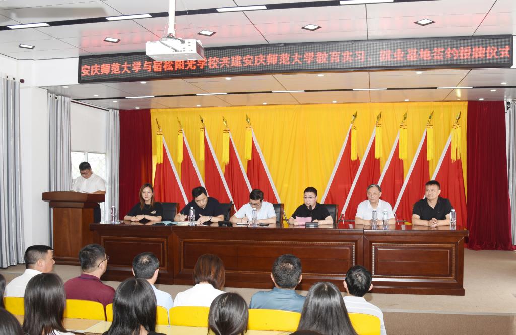 许世平一行实地考察了宿松阳光公司,听取了阳光公司的运营、人才培养模式、顶岗实习情况、就业需求情况,介绍了学习和公司的办学特色和优势,完成了与阳光公司共建太阳成集团122ccvip教育实习、就业基地的签约授牌,并与公司负责人就下一步的深度合作进行了深入交流。