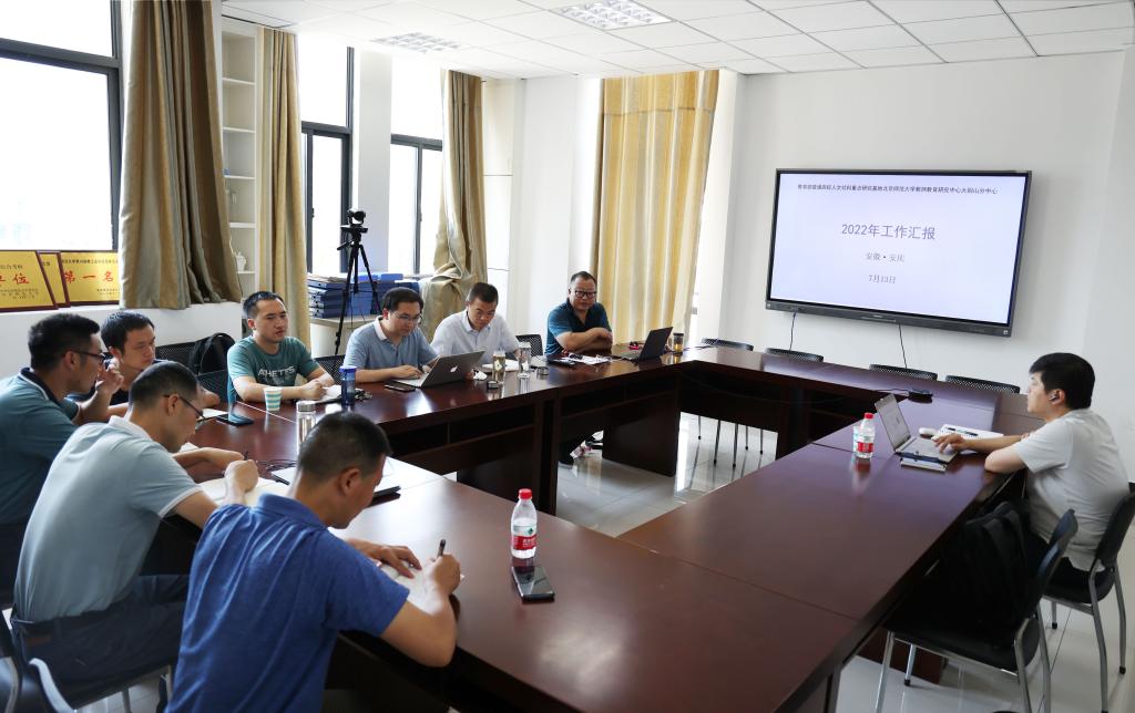 会上,吴云助首先对宋主任来分中心指导表示欢迎,接着对大别山分中心2022年上半年的工作进行了总结,主要分为四个方面:一是积极参加北京师范大学教师教育研究中心组织的分中心揭牌请和《新时代基础教育强师计划》专题研讨会第系列活动;二是组织高水平学术活动,邀请薛二勇、李丽莎、孙彩平等七场高质量的学术报告,编写了大别山分中心简报;三是落实“师范生学习与教师培养质量追踪数据库”建设工作;四是下一步工作打算,主要围绕凝练教师教育成果申报国家级教学成果奖、举办新时代“红色园丁”培养理论与实践学术论坛、继续做好数据库填报工作等。