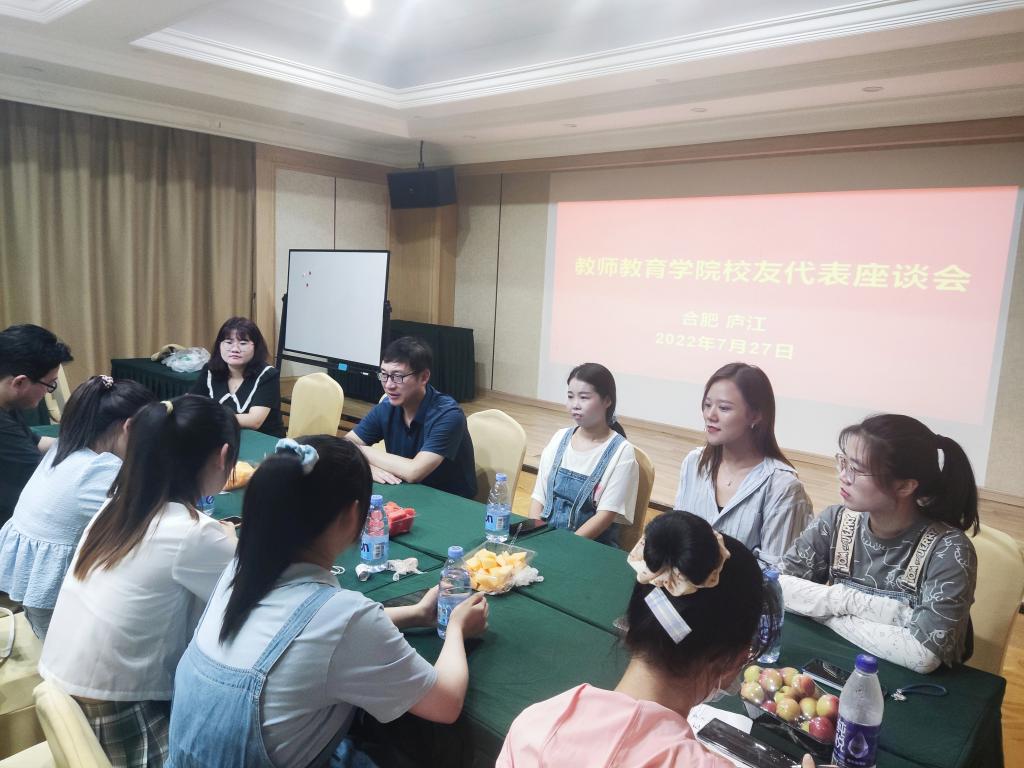 许世平一行在庐江县召开了毕业生就业市场调研座谈会。召集了近几年毕业庐江籍的小学教育、应用心理学等专业的员工代表,询问了员工毕业后的工作生活近况、对母校的专业建设的相关建议。毕业生纷纷谈了自己走上工作岗位之后的真切感受,同时对母校和公司的精心培养表达了感激之情。