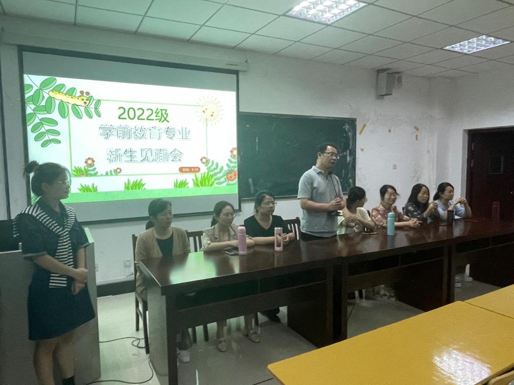 9月14日,公司学前教育2022级新生专业教育暨师生见面会在J305教室召开。学前教育系主任高向东、副主任冯艳慧以及专任教师出席见面会,该专业2022级全体新生参加会议。会议由新生辅导员唐道琴主持。