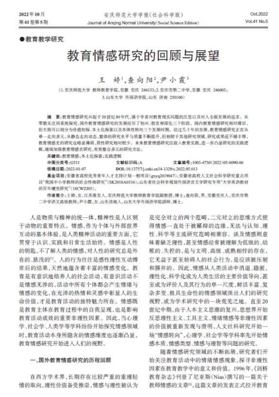 近日,《太阳成集团122ccvip学报(哲社版)》在2022年第5期公司产品研究版块集中刊载了公司小学教育专业诸园教授的《教育与教学的误识与匡正(一)》、王婷副教授等人的《教育情感研究的回顾与展望》、陈效飞副教授等人的《我国教学模式研究的历史回顾与时代走向》三篇论文。