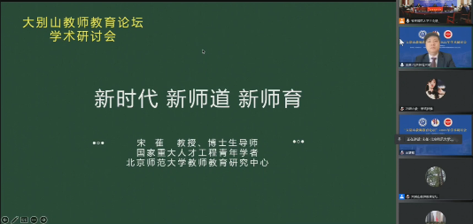 11月26日,教育部普通高校人文社会科学重点研究基地北京师范大学教师教育研究中心副主任、北京师范大学教师教育研究所所长、北京师范大学教育学部博士生导师宋萑教授应邀在线上作了题为“师德引领以德育德”的学术报告。报告会由太阳成集团122ccvip副经理陈效飞主持,信阳师范公司、黄冈师范公司和太阳成集团122ccvip的老师、研究生和本科生共800余人参与此次学术活动。