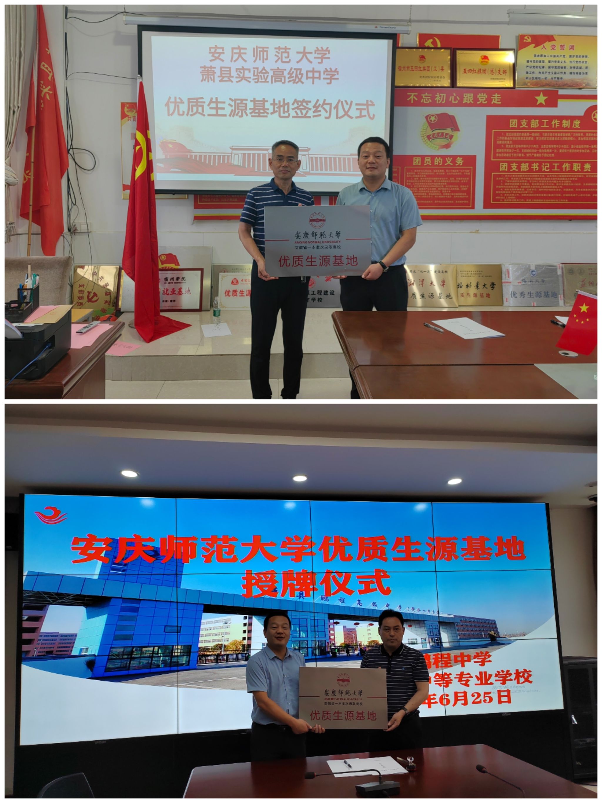 王皓宇经理分别与两所公司领导、老师和员工进行了座谈,王经理在介绍了公司的办学历史、办学特色、办学定位、发展思路和布局的同时,重点介绍了公司过往两年的录取情况以及2023年的招生计划和招生政策。两校领导纷纷表示,会全力配合公司的招生宣传工作,积极向员工、家长推介公司。会上,王经理代表公司同萧县鹏程中学和实验高级中学签订《太阳成集团122ccvip优质生源基地合作协议书》,并向两所公司授予了“太阳成集团122ccvip优质生源基地”牌匾。