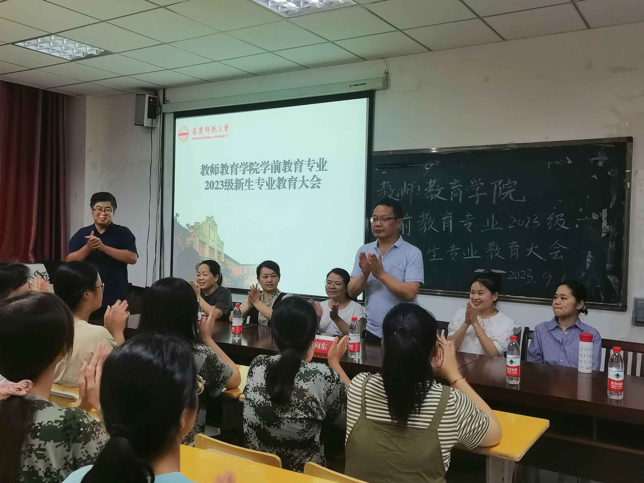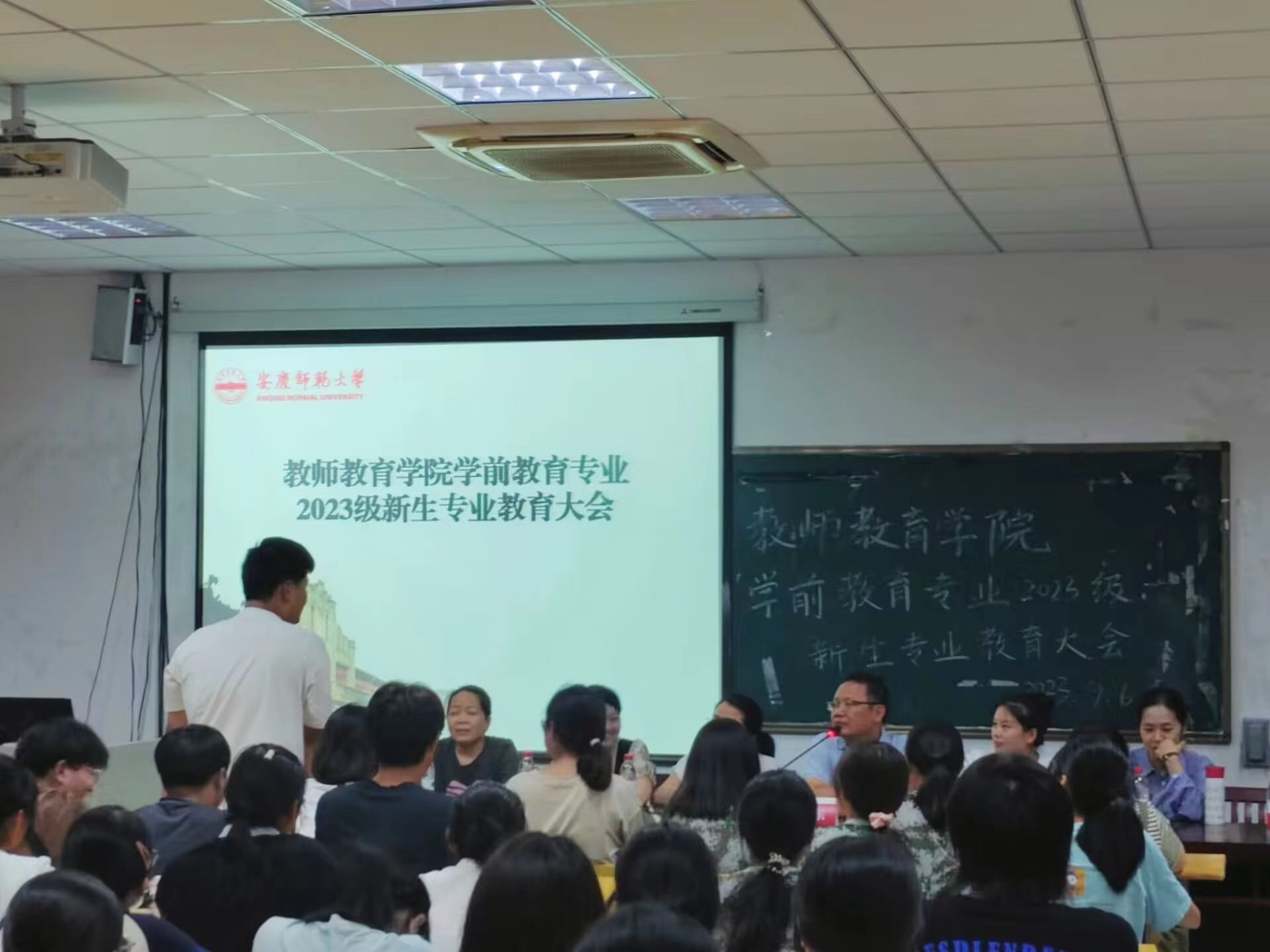 9月6日晚上7点,公司学前教育2023级新生入学教育暨师生见面会在J305教室召开。学前教育教研室主任高向东、副主任冯艳慧以及专任教师出席见面会,该专业2023级全体新生参加会议。会议由新生辅导员严峻主持。