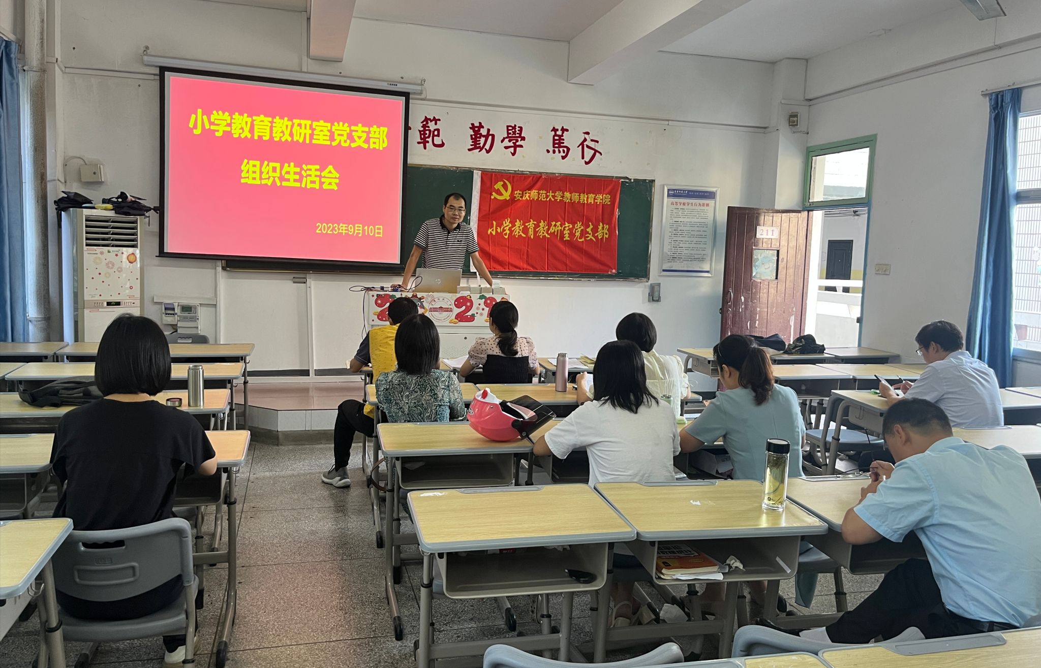 9月10日上午,小学教育教研室党支部在菱湖校区211教室召开组织生活会,会议由支部书记陈效飞主持,支部全体党员教师参加,公司党委副书记许世平到会指导。