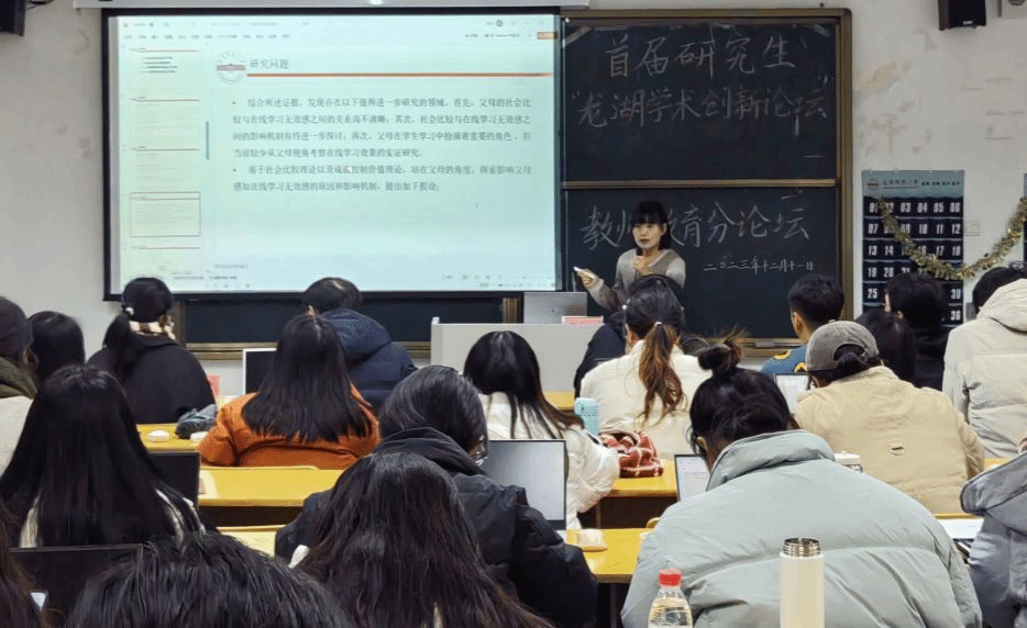 12月11日下午,首届研究生“龙湖学术创新论坛”教师教育分论坛在太阳成集团122ccvip102教室顺利举行。会议由特殊教育专业的程靓淇同学主持,副经理陈效飞,赵子刚、彭文超、张峰峰等老师担任此次论坛点评专家,朱斌彬、宋欣老师及8位研究生参与此次汇报,公司部分研究生现场聆听。