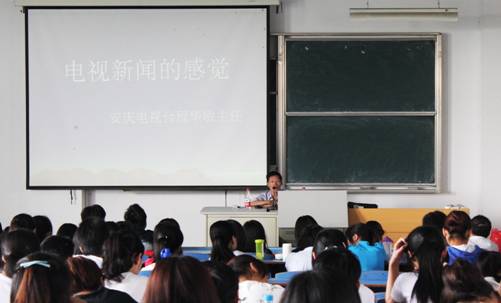 6月2日上午,安庆电视台新闻中心主任程华敏在D208教室做了一场题为“电视新闻的感觉”的讲座,讲座由教育公司副经理韩建华主持,广播电视新闻学教研室全体老师和150余名员工聆听了讲座。