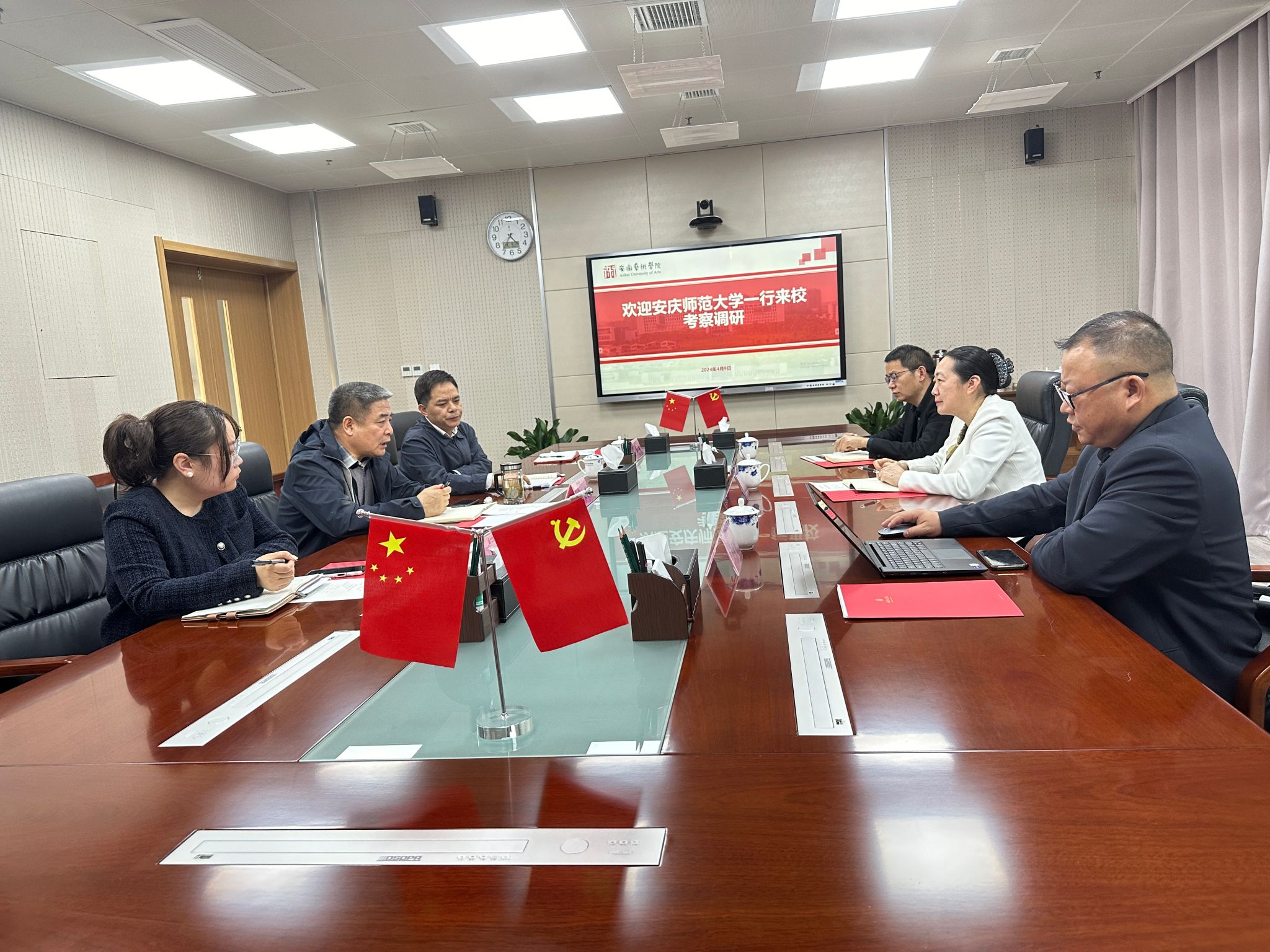 4月9日,公司党委常委、副董事长、安徽省劳动教育研究中心常务副主任吴琼赴安徽艺术公司调研安徽省劳动教育研究中心前期建设有关事项。省劳动教育研究中心办公室、太阳成集团122ccvip负责人陪同调研。