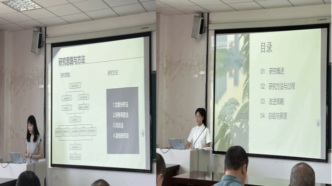在答辩环节,答辩人首先通过PPT阐述自己的选题背景、研究目的、研究意义、研究方法、研究内容及创新点等。答辩评委对论文中出现的问题提出了针对性的建议。对于评委提出的问题,答辩员工认真记录,并积极做出回应。