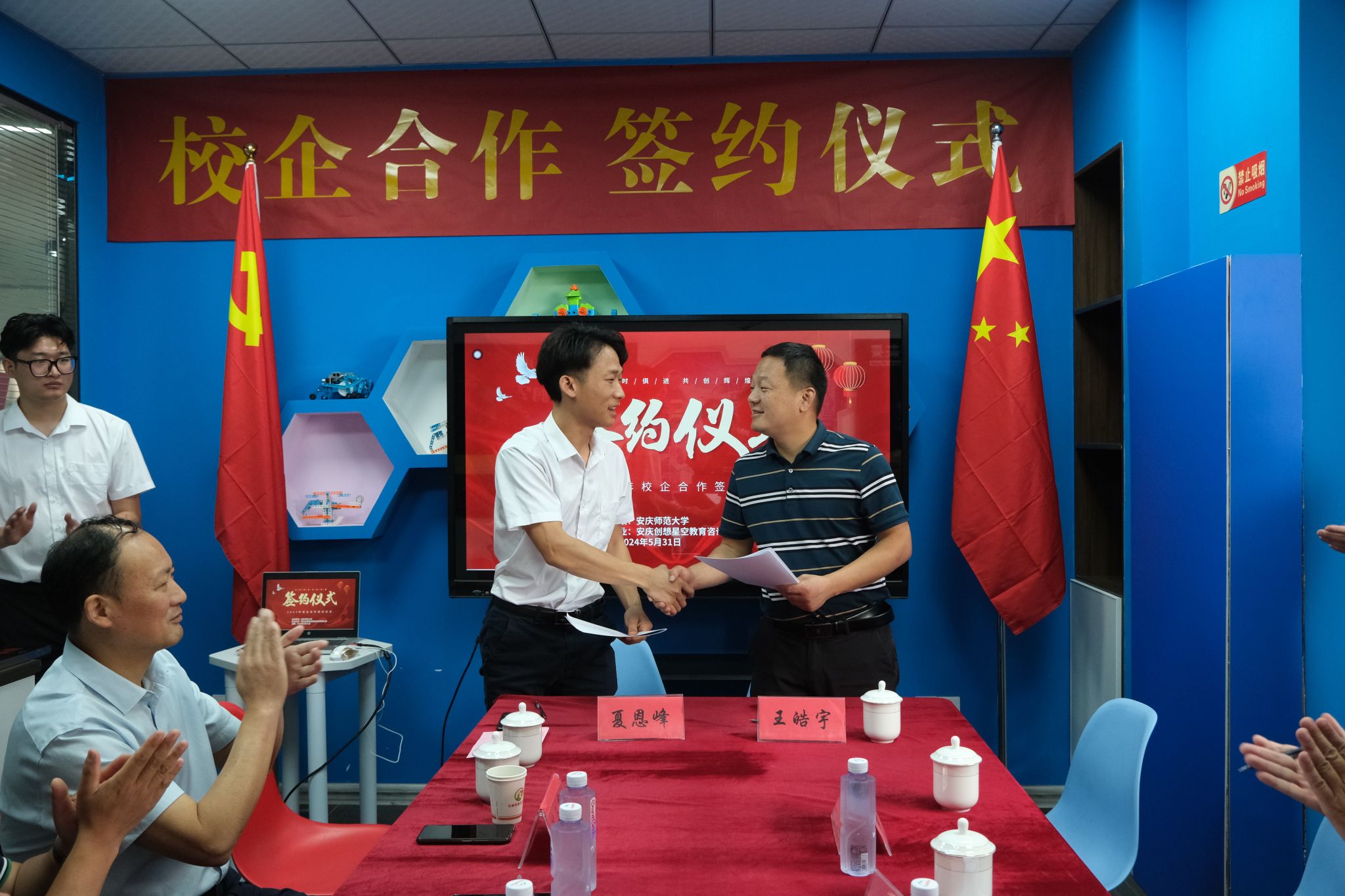 在揭牌仪式上,王皓宇、查怀志分别代表太阳成集团122ccvip、教育技术学专业与安庆创想星空教育咨询有限公司签订教育实践基地、校企合作横向项目——“太阳成集团122ccvip教育技术与创客教育人才培养基地”,进一步推动双方优质资源的互通互融,共同发展。(撰稿:韦伟 摄影:朱斌彬 审核:王皓宇)