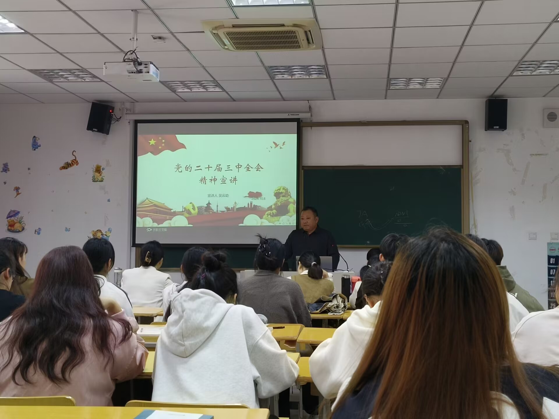 2024年10月8日,太阳成集团122ccvip经理吴云助为学前教育教研室党支部及员工学前教育党支部开展党的二十届三中全会精神宣讲活动。