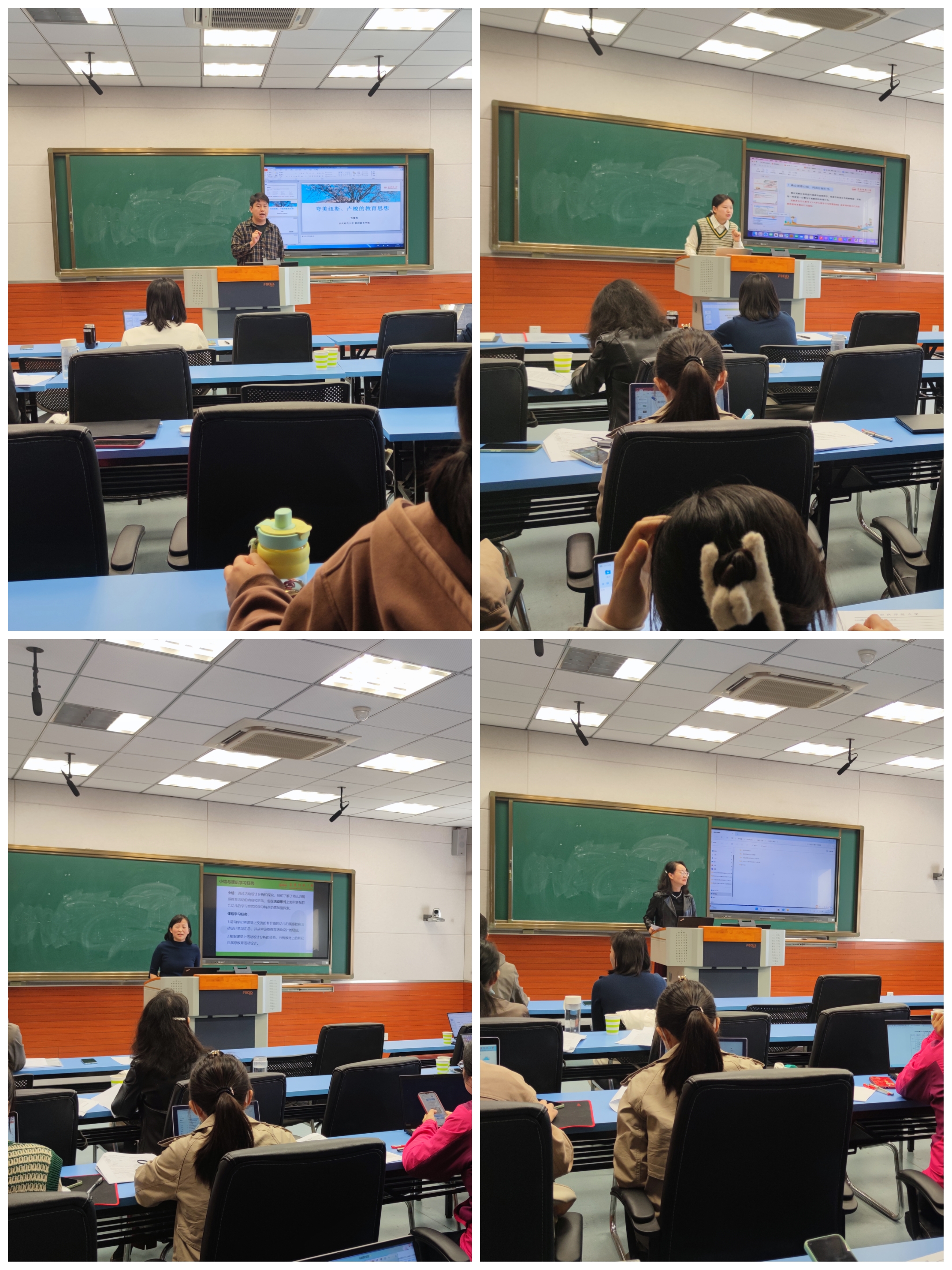 接着,教师针对自己所带课程进行了汇报,大家围绕课程教学理念目标、内容分析、学情分析、课程思政、教学过程与方法、考评与反馈、教学设计创新七个方面展开细致讨论。