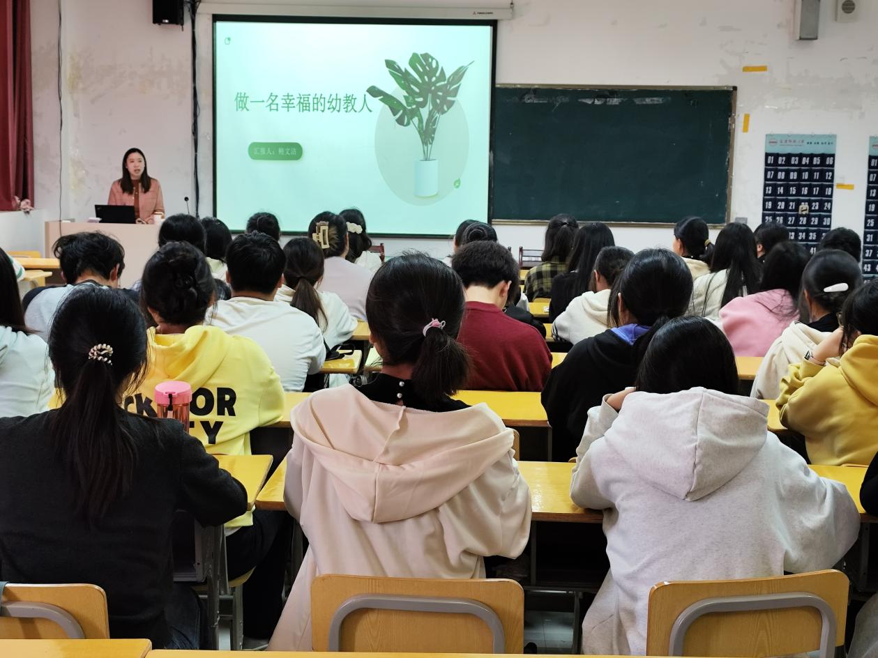 11月12日,安徽省教坛新星、安庆市墨子巷幼儿园本部执行园长鲍文洁做客红色园丁大讲坛,作题为“做一名幸福的幼教人”的学术报告。报告会由张亭亭老师主持,公司学前教育专业部分教师、员工参加了报告会。