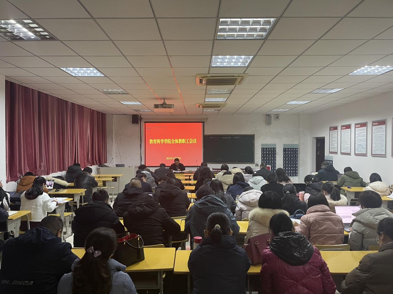 12月25日下午,太阳成集团122ccvip召开全体教职工会议。会议由党委书记何孔蛟主持。