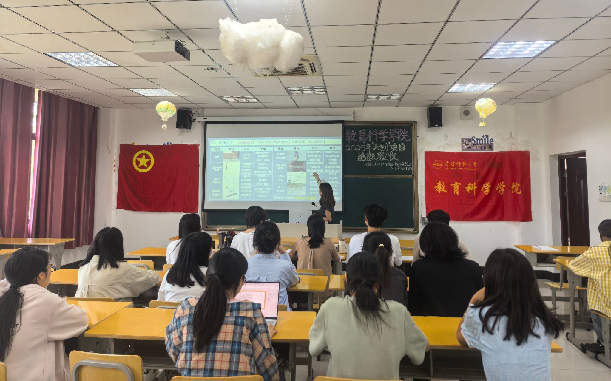 本次参评项目紧密结合社会热点问题,涵盖传统文化传承、留守儿童教育问题等多方面内容,既有技术突破的探索,也有服务社会的实践应用。会上,各项目组通过PPT展示、实物演示等方式从研究过程、创新性课题延续性等方面展开汇报,着重展示了项目执行情况、项目成果、研究价值等内容。其中,“古韵新颜—宣纸文化传承与发扬”项目团队带来以宣纸为材料制作的精美团扇,将传统宣纸工艺与现代美学设计巧妙融合,展现出文化创新的独特魅力。评委老师围绕项目研究重难点、主要成果、实际应用等方面进行了深入提问并提出针对性意见。