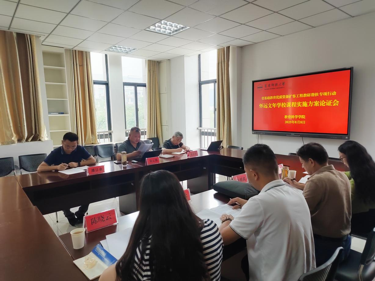 2025年8月8日,怀远文年公司执行董事长高绍武、教研室主任陈松、办公室副主任张玉凤和语文教研组组长陈晓云一行四人来到公司,就该校即将实施的学科课程实施方案听取专家意见,公司在J202会议室举行了“怀远文年公司课程实施方案论证会”。会议由经理吴云助主持,公司部分教师参加了论证会。