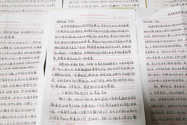 当天,50名员工安静地坐在教室里思索着,他们把自己一年来的“错误”经历写在信里,告诉学弟学妹们以后不要“重蹈覆辙”。“千万别挂科!一定要好好学习专业课!”黄新培写下自己大一期间最后悔的事情,就是没能平衡好专业学习与实践活动的关系,导致在期末考试挂科。他说,写信其实也是一个反思的过程,希望自己今后不要再做让自己后悔的事情。