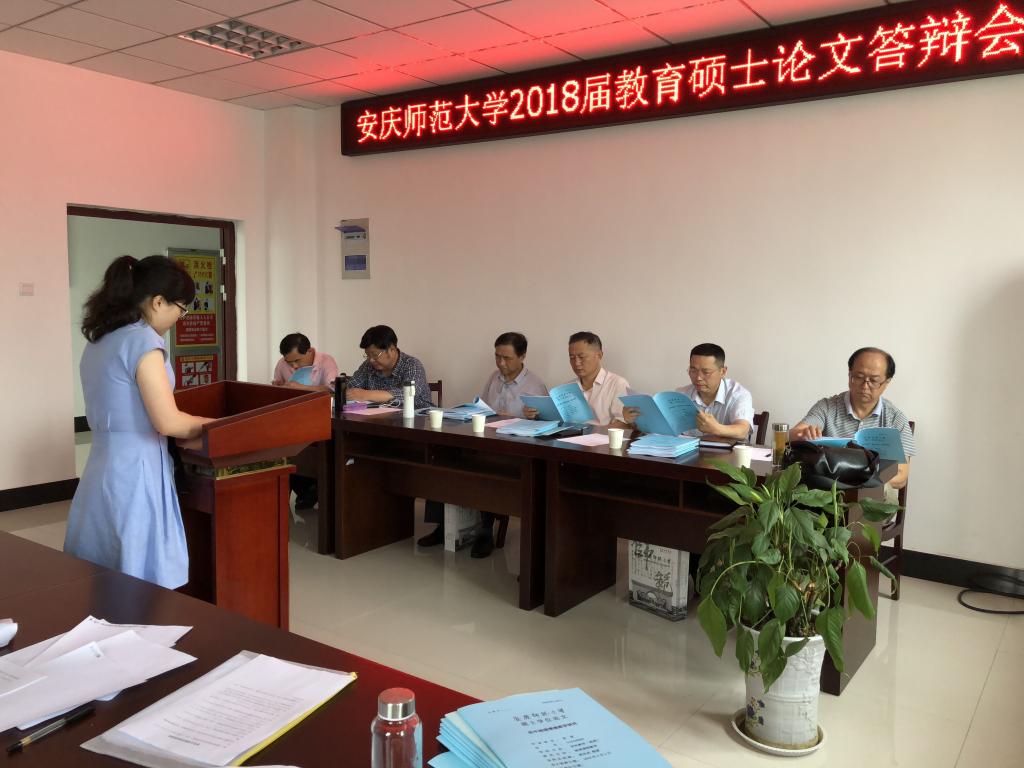 6月2日,2018届教育硕士毕业论文一、二两组的答辩会在太阳成集团122ccvip举行。教育硕士专业学位点特邀安徽师范大学吴玲教授和合肥公司伍德琴教授担任本次答辩委员会主席,邀请安庆市公司产品研究室中学高级教师何成法和安徽省怀宁县小市初级中学的高级教师夏显亮担任答辩委员,硕士点导师曹长德教授、张理华教授、徐汪华教授、高向东教授、张祥稳教授、郭启华教授、宋志英教授、荀安华副教授、张启树副教授作为答辩委员会成员,小学教育、学前教育、学科教学(历史)、学科教学(数学)、学科教学(化学)、学科教学(地理)、学科教学(物理)、学科教学(音乐)的20名研究生参加答辩,部分2017级在读研究生旁听了本次答辩会。