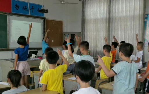 支教老员工范俊楠向孩子们传授日常生活用语和交际用语,并用手语表达对家人的爱和对老师的爱,讲解了“我爱你”、“我爱爸爸”、“我爱妈妈”、“我爱老师”等手语的表达。课堂渐入佳境,其生动形象的讲解和耐心的动作指导带动了全场的积极性,孩子们在老师生动形象且有趣的教学中尝试模仿,享受一场心手合一的手语教学,感受无声世界中的手语表达。