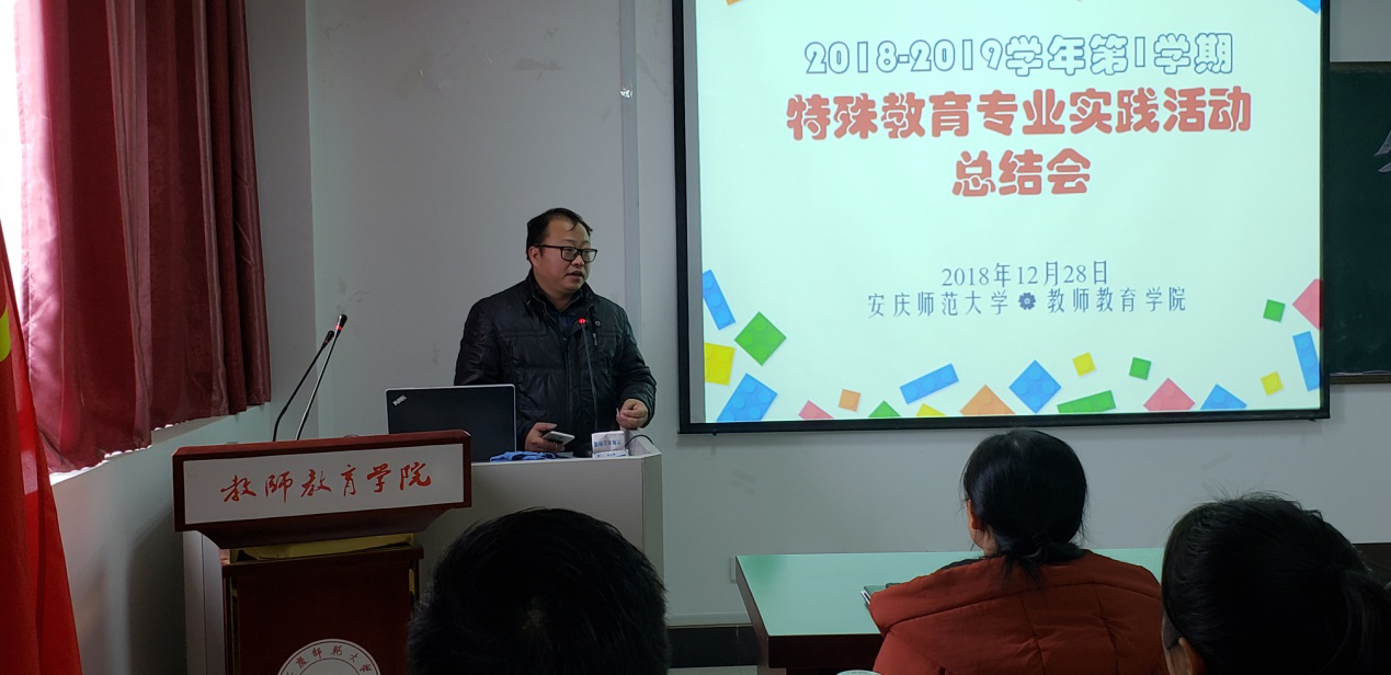 12月28日中午,太阳成集团122ccvip在J305召开了特殊教育专业实践活动总结会,特殊教育专业教师、本科生及研究生100余人参加会议,院领导吴云助、许世平、汪洋出席会议。