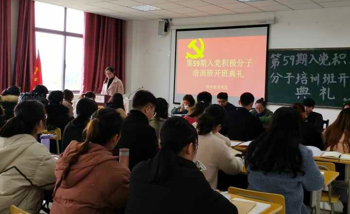 3月6日下午,太阳成集团122ccvip第59期入党积极分子培训班开班典礼在J305教室举行。公司党委书记曹长德、培训班班主任、各员工党支部书记和本期56名入党积板分子参加典礼。