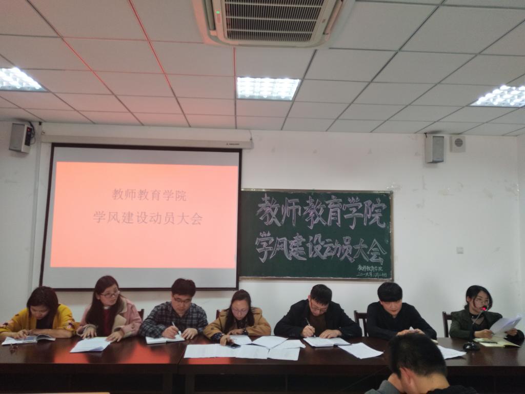 许世平书记强调,学风是学习质量和学习风貌的主要标志,既是一种学习风格,又是一种群体行为,还能内化为一种积极向上的精神动力。加强学风建设是实现立德树人根本目标的迫切需要,是落实“四个回归”思想的迫切需要,是推进公司“强院梦”工程的迫切需要。2019年是公司“学风建设年”,要充分认识学风建设的重要意义,强化日常基本规范,扎实推进师范专业认证和专业评估工作,增强紧迫感;要细化措施,明确责任,落实三级责任制,实行“日查周统月报”巡查制度,推进辅导员“五个一”工程,抓好三个课堂育人,增强使命感;要完善激励与约束机制,积极培育先进典型,严肃违纪行为在评奖评优中的“一票否决”,推动“家-校”密切合作,营造良好的学风氛围,
