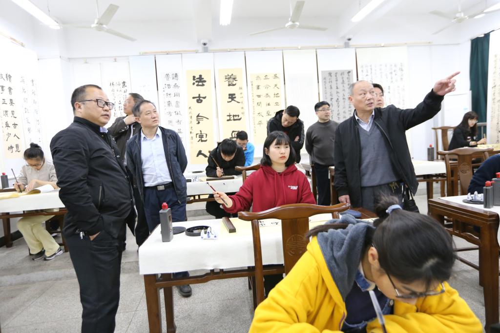 在研讨会前,双方在D101书法教室参观了受赠的33幅书法作品,举行了书法作品收藏证书颁发仪式,还对部分书法爱好者的现场临摹作品进行了指导和评点。(文 黄欣培 /图 范华)