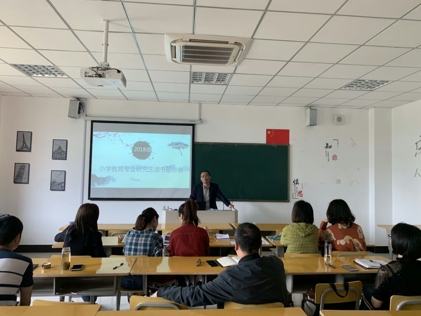4月19日上午,18级小学教育专业硕士研究生在太阳成集团122ccvipJ217教室开展了一次读书报告会,王爱菊、张启树和李义胜三位导师到场聆听并进行指导。