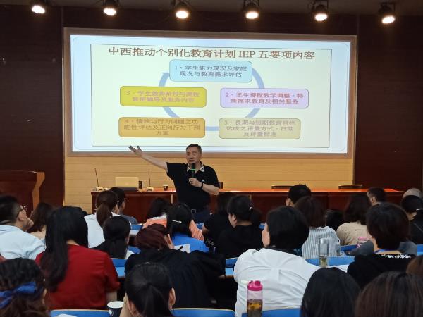 在本次讲座中,林教授围绕着评估式个别化教育计划设计与实践这一主题,系统详细地介绍了员工能力及家庭现况评估、员工课程教学调整及相关服务、长期与短期教育目标达成评量、情绪与行为问题功能性评估及正向行为干预方案、员工教育阶段与离校转衔辅导及服务等IEP制定的具体操作方法。尤其针对情绪行为障碍员工分享了评估和干预方案的经验,介绍了正向情绪行为介入量表以及相关的筛查和转介量表,并在讲座现场依据参会人员提供的案例进行了现场演示,就评估后如何拟定干预方案进行了讨论。林教授的讲座紧密结合了特殊教育实际,又有丰富的案例分享,评估工具简便易行、操作性强、适用于各类特殊儿童。聆听讲座者均表示此次学习对自己专业水平的提升作用巨大,会在日后的工作和学习中进一步实践运用。讲座现场气氛热烈,现场提问积极踊跃,参会者多次以热烈的掌声回应林教授的精彩分享。