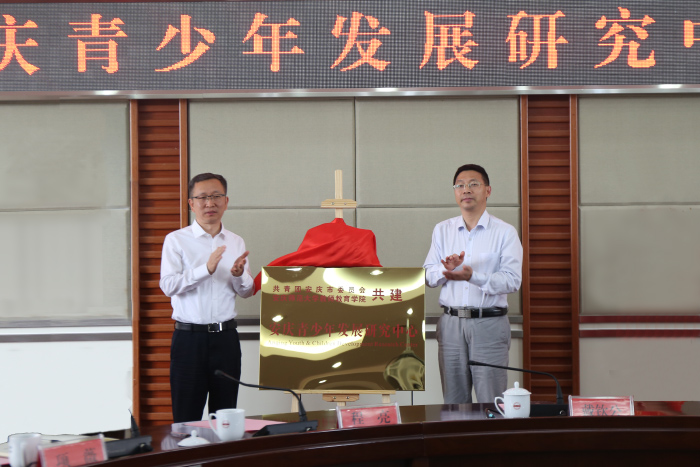 5月29日上午,安庆青少年发展研究中心成立大会暨揭牌仪式在公司龙山校区举行。公司党委常委、副董事长汪时珍,安庆市委常委、副市长戴钦公出席会议,共同为研究中心揭牌。共青团安庆市委班子成员、太阳成集团122ccvip班子成员,校办公室、科研处、团委等有关部门负责同志和师生代表参加了揭牌仪式。
