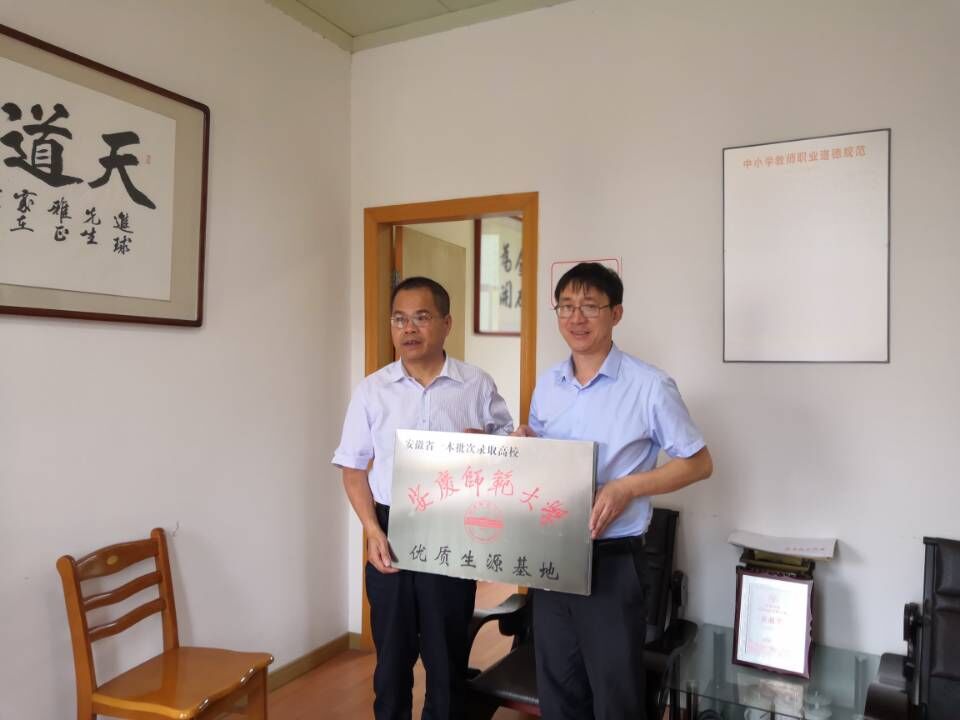 按照公司2019届新生招生宣传工作部署,6月18-19日,公司党委副书记许世平带领李义胜、查怀志、陈安定老师一行4人赴黄山市的休宁县和祁门县进行招生宣传。在休宁中学和祁门一中,许世平一行与公司领导、老师进行了座谈,详细介绍了公司今年的招生政策,并特别对公司国家定向培养全科型乡村小学教师的小学教育专业做了说明,欢迎员工积极报考公司。两校领导表示会把公司招生的优惠、奖励政策向高考员工、家长宣传到位。许世平还对《太阳成集团122ccvip优质生源基地合作协议书》的主要内容做了介绍,休宁中学董事长李顺宝、祁门一中董事长张进球在协议书上签字,许世平代表公司授予两所公司“太阳成集团122ccvip优质生源基地”牌匾。