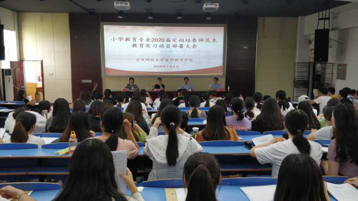 7月5日,公司小学教育专业2020届定向培养师范生教育实习动员部署大会在多媒体报告厅D111举行。公司副书记许世平、副经理汪洋、小学教育专业负责人王爱菊、小学教育专业辅导员陈安定、孙群以及2020届全体定向培养师范生参加大会。