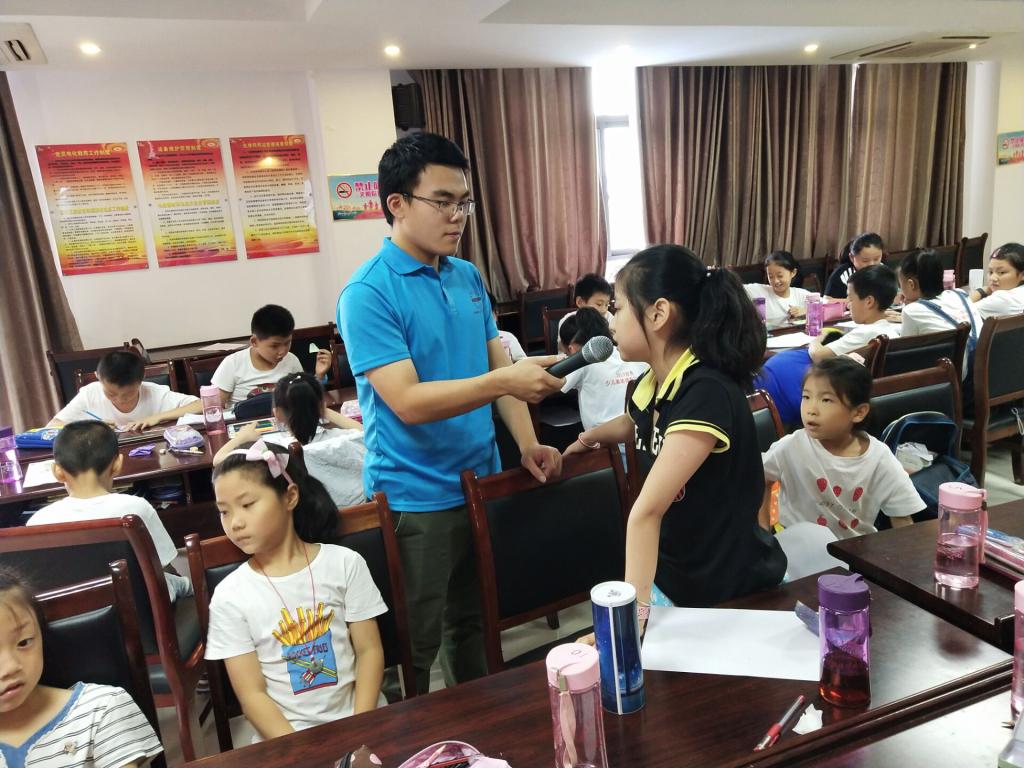 课堂上志愿者应用心理学专业2018级的张添一首先介绍具体步骤,让每个孩子用想象去画出可以表示自我的一件物品,并依次上台介绍选择该物品的原因。