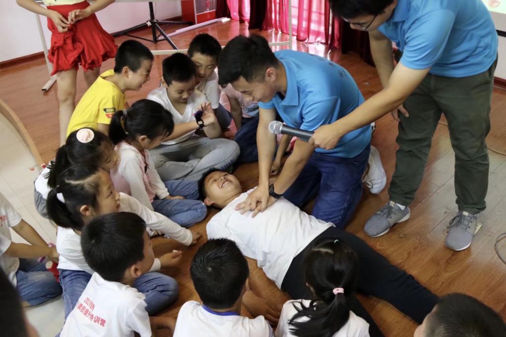 中暑、流鼻血以及皮肤擦伤等问题的正确处置方法,潘老师也结合案例以及实操一一为小朋友们讲解,课堂最后,小朋友们纷纷表示这节课太有意思了,想多上几节这样的课。“像这样类似的课可以多给孩子们上,志愿者们把理论与实践恰到好处地结合在一起,给孩子们留下深刻的印象,以后他们不仅能自救,还能施救别人,非常感谢志愿者们的用心。”四年级的苏云祥妈妈说。